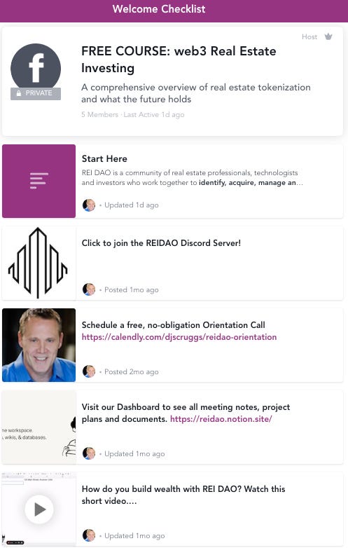Once you’re on the inside, we have a Welcome checklist that explains the concept and a multiple asks for you to schedule an orientation with me.