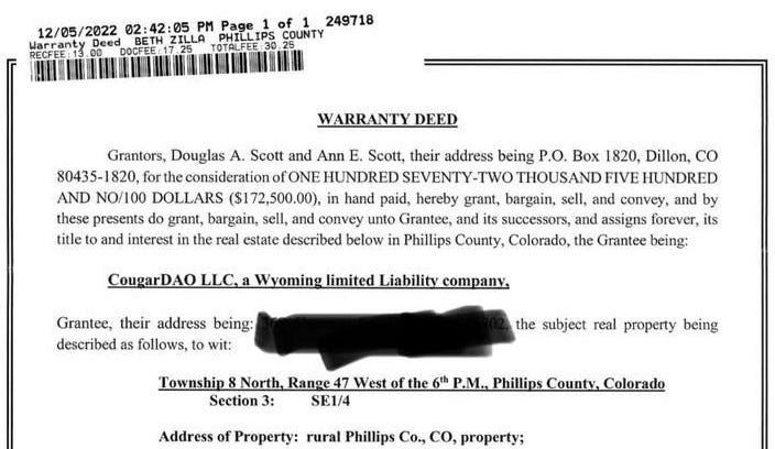 đ¨âđž We've gone and done it! CougarDAO LLC has purchased a farm